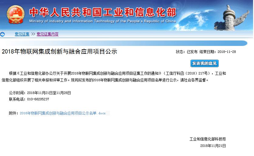 11月21日,国家工业和信息化部发布了2018年物联网集成创新与融合应用项目名单,我司自主研发的物联网办公节能管控系统成功入选该项目里的重点领域应用类别。...