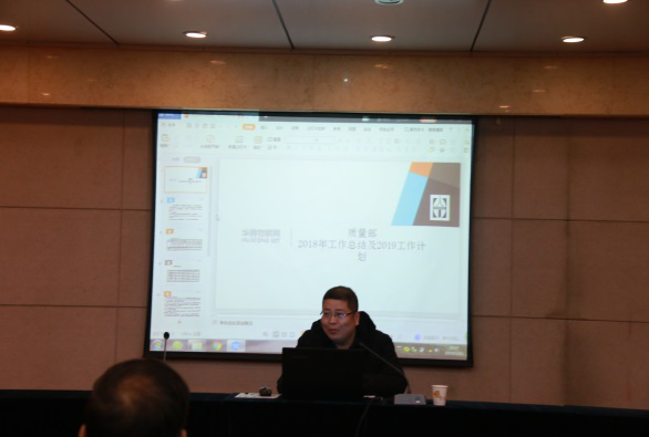 2019年1月31日上午10时,陕西华腾云物联网有限责任公司2019年新春年会在黄河酒店举行,公司全体同仁齐聚一堂,总结2018年,展望2019年。 年会第一项议程由各部门负责人做工作汇报,对各部门2018年工作完成情况进行总结,对存在问题进行分析,同时对2019年工作进行规划。