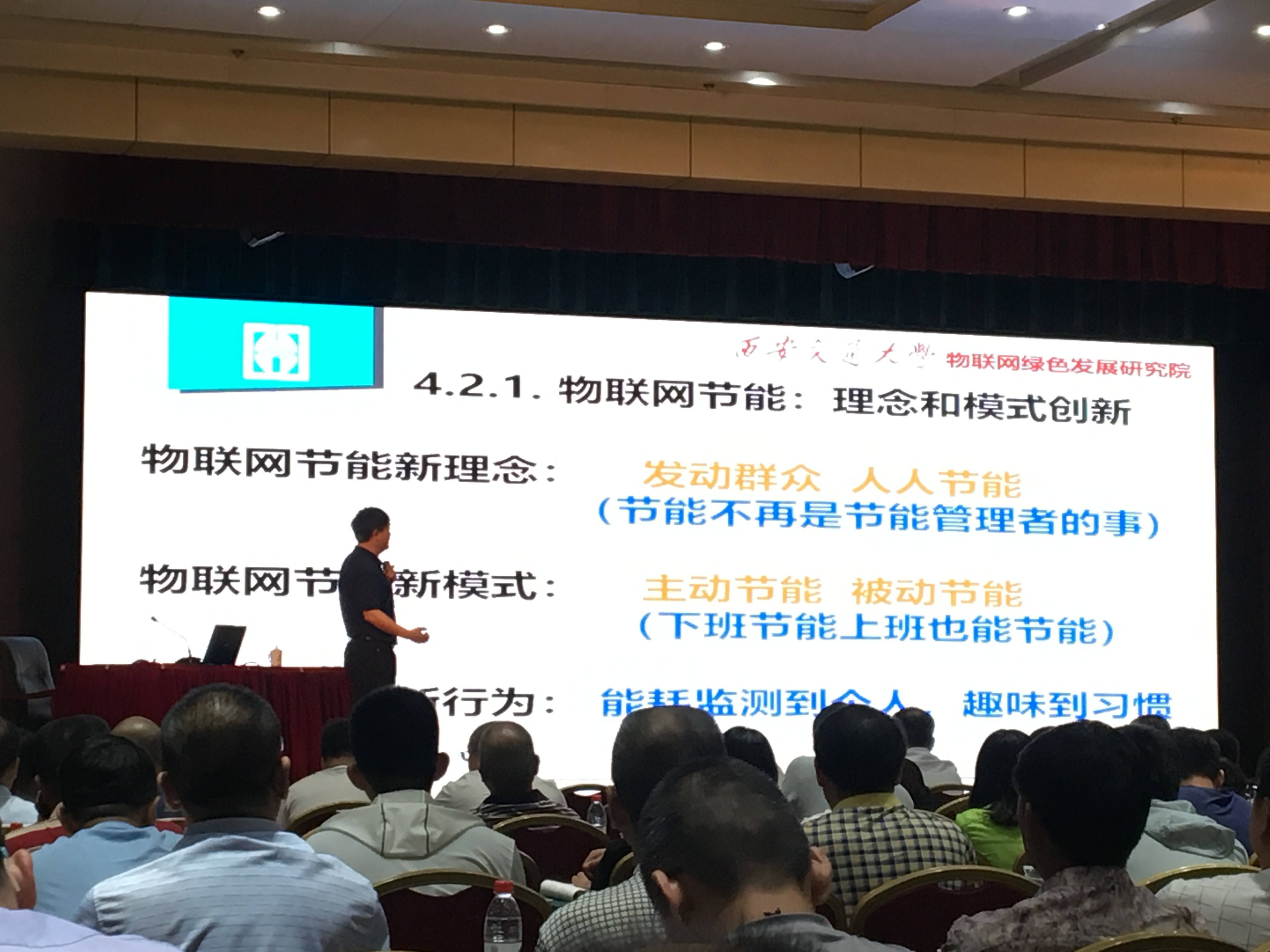 图:西安交大物联网绿色发展研究院院长乐开端授课 在培训会上,乐开端院长以《物联网技术节能应用与创新》为主题,深入分析我国当前电能使用现状及存在问题,讲述当下物联网技术发展态势及应用前景。随着我国经济高速发展,电力能源消耗日益增长,与此同时存在的浪费现象也愈发凸显。西安交大物联网绿色发展研究院通过对物联网技术在节能领域应用的持续科研和攻关,研发出适用场景广阔,节能数据可精确统计,移动智能化控制的物联网能耗管控系统,来更好的响应和践行节约能源和保护环境的基本国策,该系统是未来智慧节能技术发展的新方向。