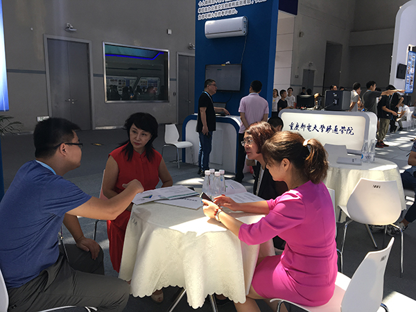 现场与专业观众进行洽谈 我院联合重庆工商大学进行芯片展出,此次展出的MEMS传感器芯片等由我院蒋庄德院士团队、赵立波教授团队、田边副教授团队研制,在各领域具有很高的应用价值,适应物联网行业的迫切需求。