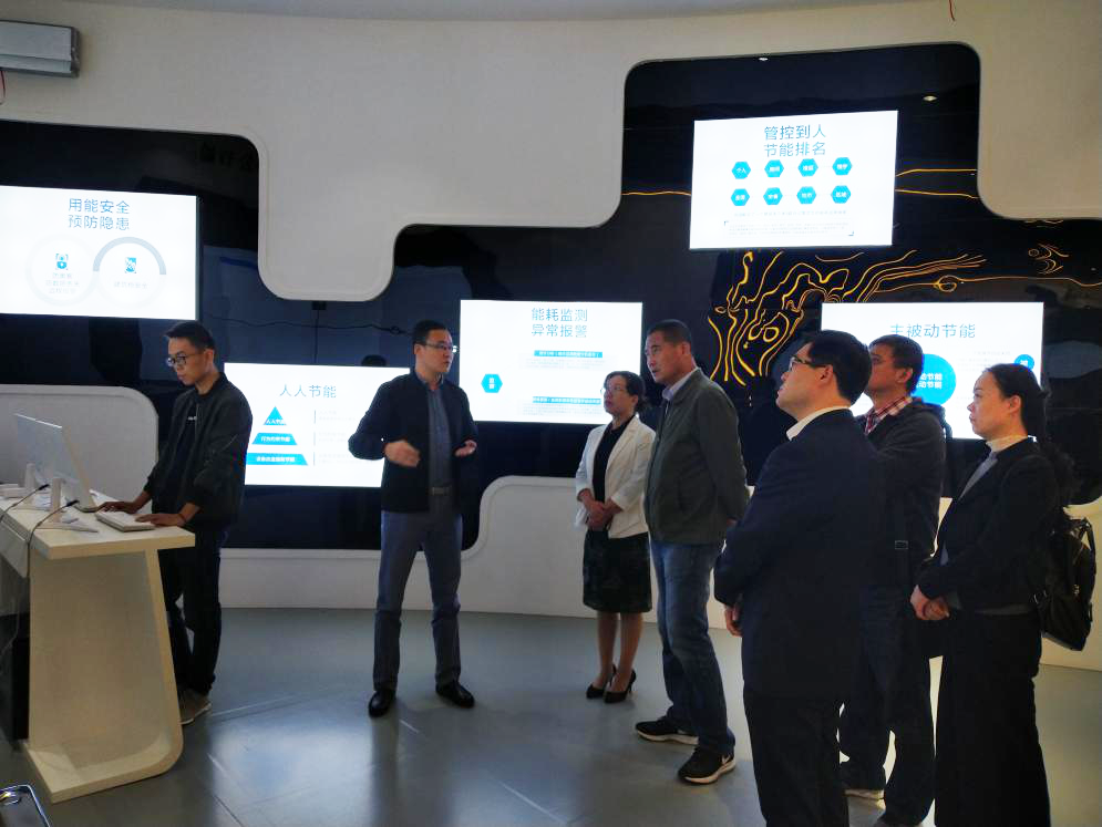 图:到访领导参观办公节能控制区 参观完我院展厅后,张东风主任一行抵达铜川市政务大楼,考察由我院建设的铜川政务大楼物联网办公节能管控示范项目。该项目建成于2017年,通过主动节能与被动节能相结合的方式,每年可节约用电14万度,节能效果显著。