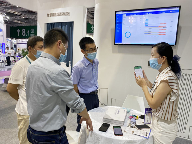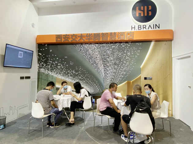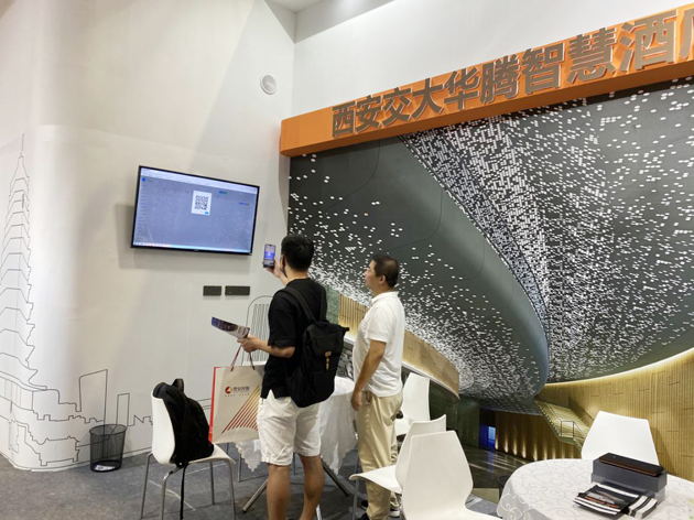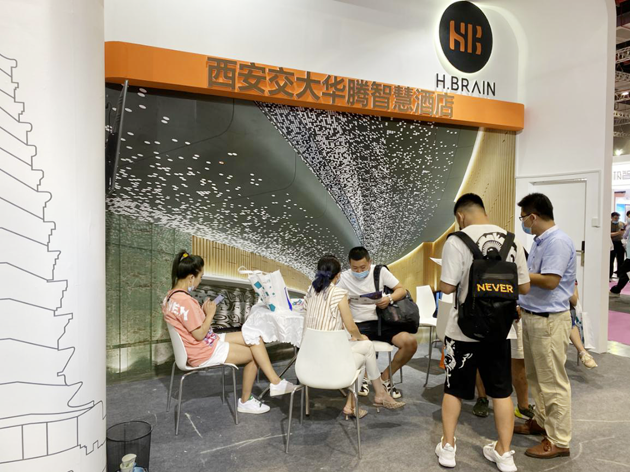华腾智慧酒店现场主要展示由西安交通大学物联网绿色发展研究院研发并转化的智慧酒店客控系统、H·Brain酒店工作流程管理系统及多用途便携式智能紫外线消毒灯产品,三大产品模块吸引酒店主纷纷驻足并进行深度洽谈。