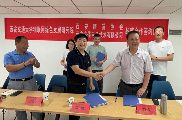 | 2021年6月15日上午,西安交通大学物联网绿色发展研究院在交大出版大厦举行战略合作签约仪式。我院院长乐开端先后与西安旅游协会会长丁晓阳、西安秦佳电子技术有限公司总经理吕润安签署全面发展战略合作协议书。
