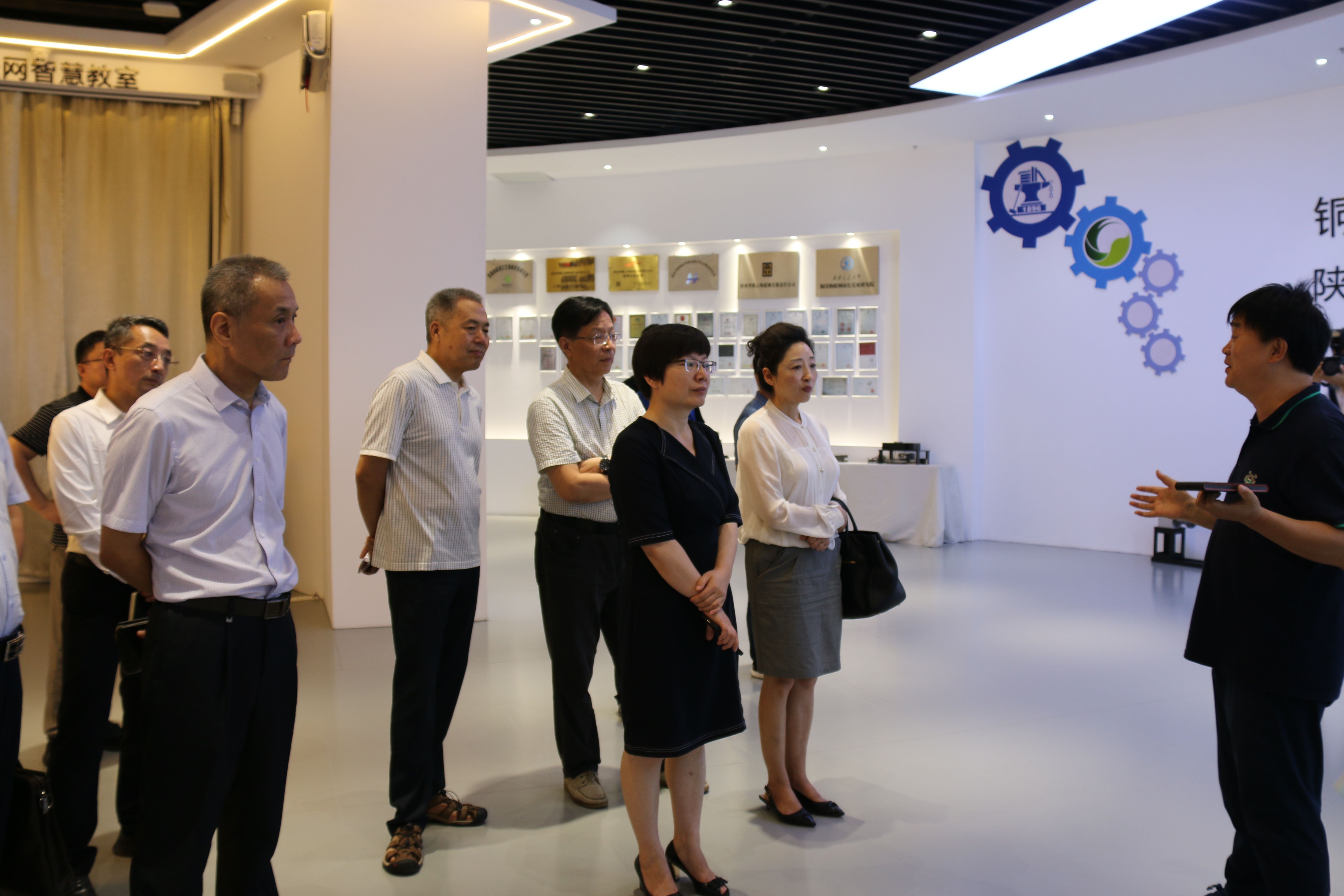 2022年8月1日,铜川市副市长雷颖、市政府副秘书长郝亚丰、市科技局局长宋鑫;西安思源学院副校长赵明宇、国内交流与合作处处长田文等一行莅临我院参观考察交流。我院长乐开端、院长助理张庭浪、能源综合管理事业部总监龙飞,行政人事部部长何玲等陪同参观。