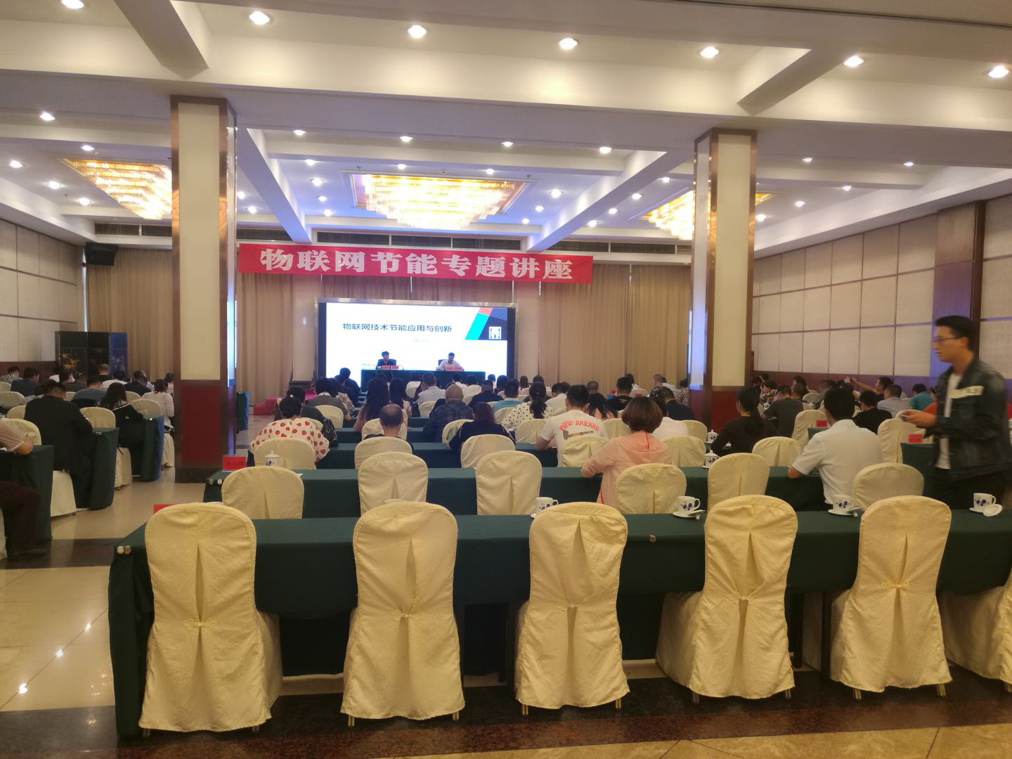 2018年4月20日,受内江市政府邀请,我司总经理乐开端教授前往内江作《物联网节能专题讲座》,以推进节约型公共机构示范单位创建工作。讲座前内江市政府黄志权秘书长、郑高贵机关党委书记等领导与乐教授一行进行了交流探讨 。 讲座由内江市政府副秘书长刘祎主持,市机关事务管理局刘杰局长,近百家公共机构节能负责人等共130人参加。乐开端教授主要就变革与时代创新、互联网+、物联网、物联网节能及案例、90后教育与创新五个主题与大家进行了分享。